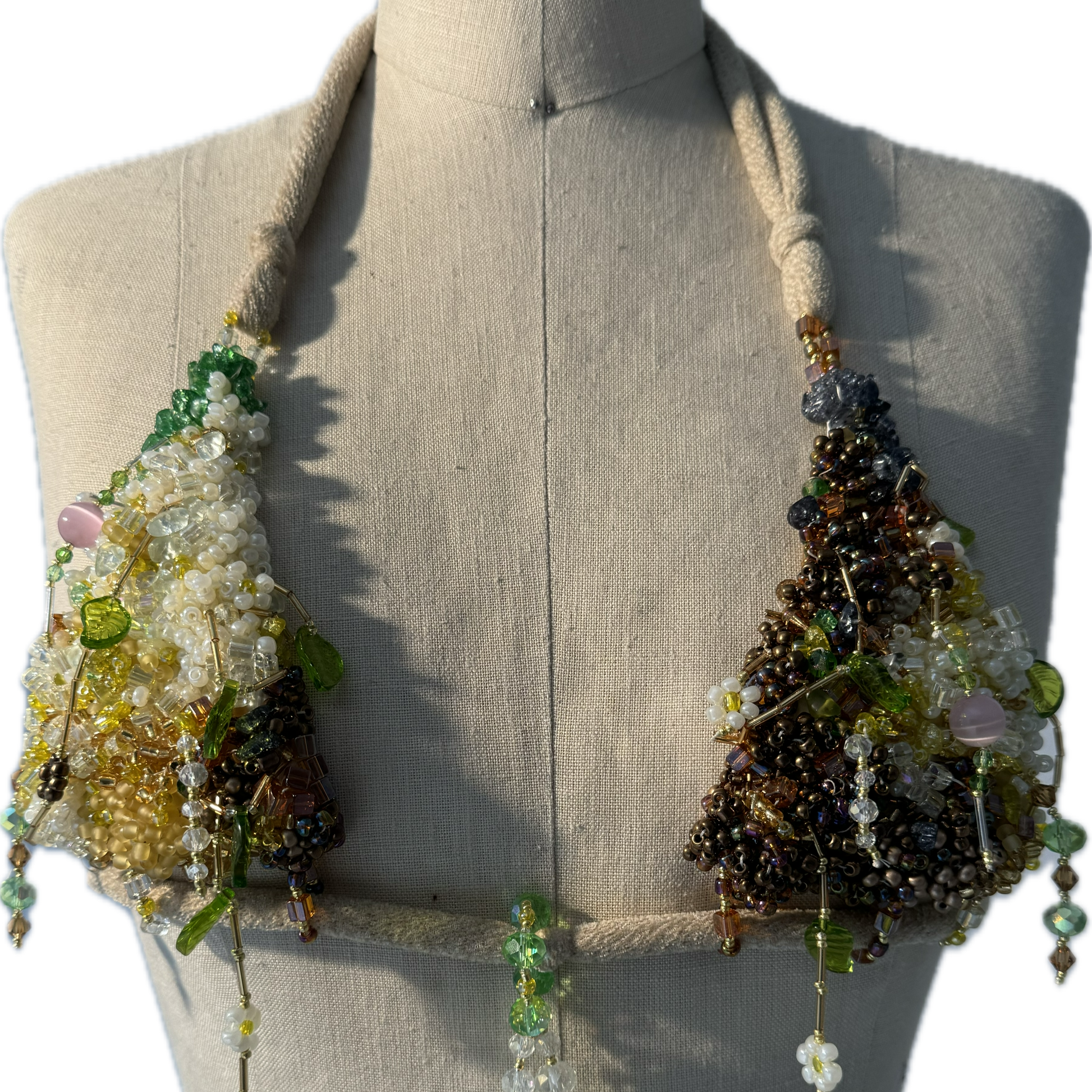 Crystal embroidery, this piece is made with selected crystals, clear quartz, Japanese crystal beads and Swarovskis.